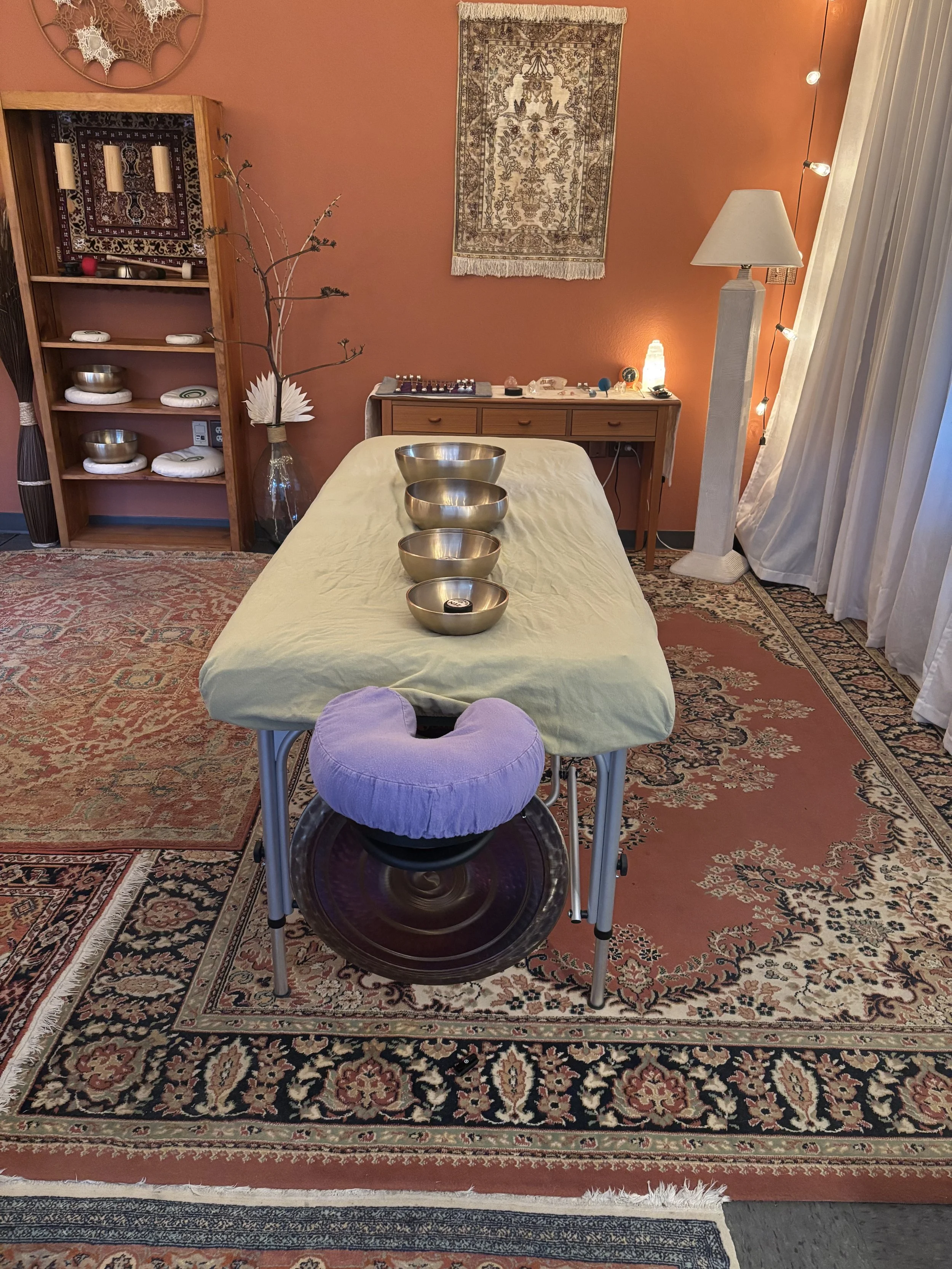 When work with individuals I work both on the body and in the Biofield of the body to ease pain and repaattern habitual responses. I combine authentic and honest conversation - being seen and witnessed with sound to enhance personal transformation in order to spend more time in equanimity. Schedule an appointment with the link below, or sign up for a package.